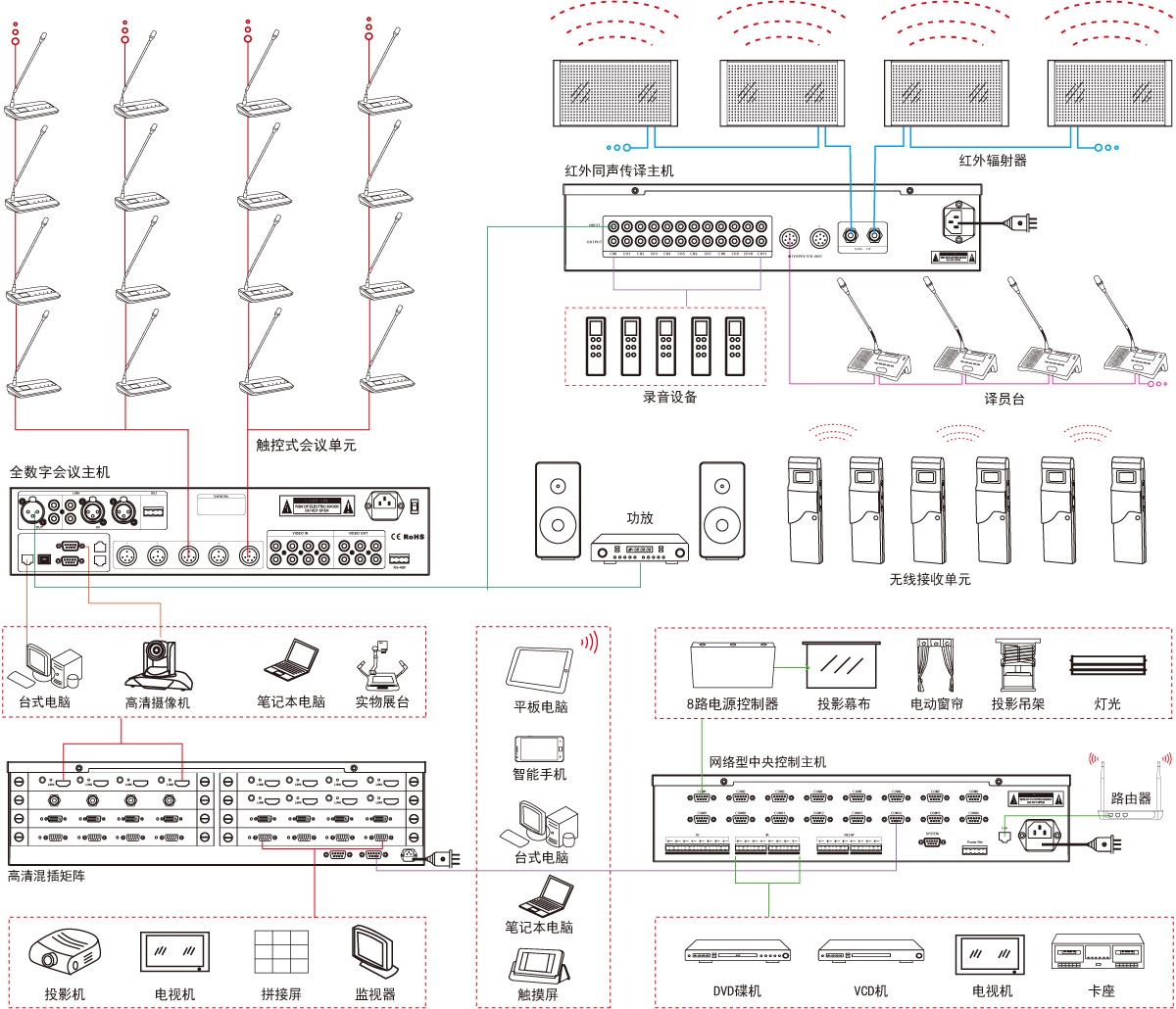 - 具有發(fā)言討論、攝像跟蹤、投票表決、同聲傳譯、會議服務(wù)于一體的多功能會議終端;