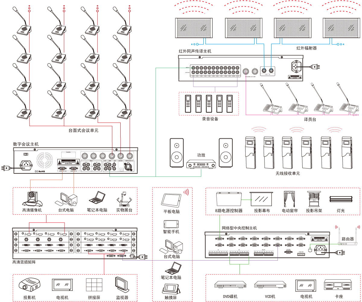 - 采用數(shù)字強抗干擾技術(shù),確保會場內(nèi)設備不受手機、藍牙、無線電、WiFi等信號干擾;