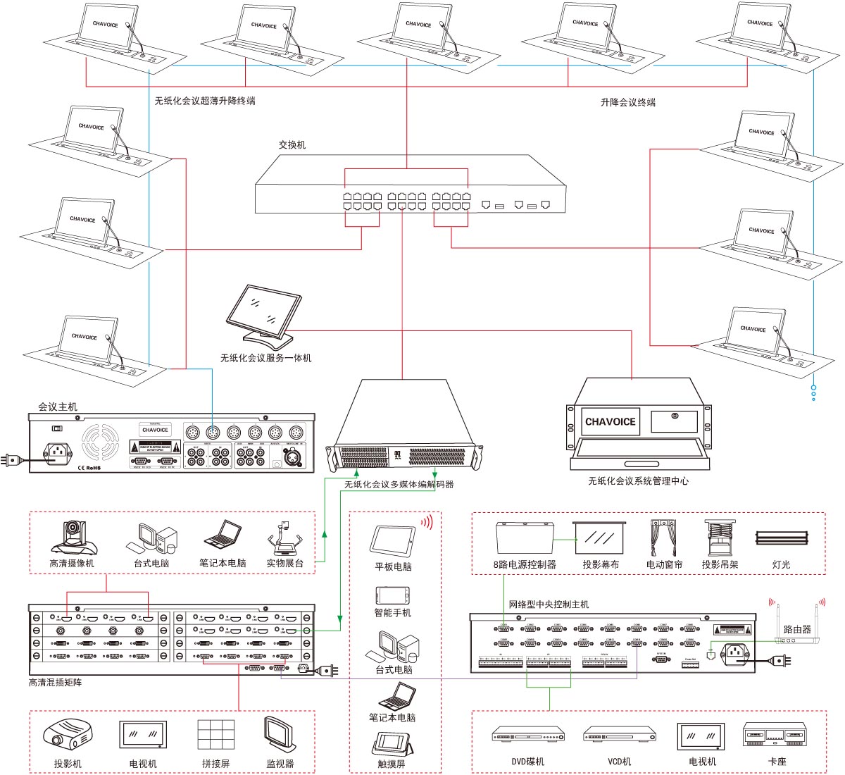 - 支持面板手動控制、手拉手RS-232控制、軟件控制、遙控控制、中控控制、分組控制等控制方式;