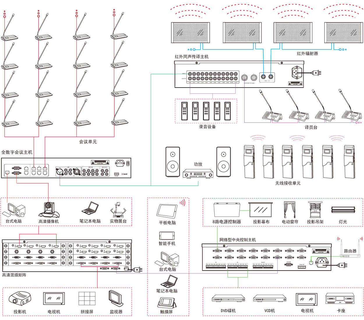 - 系統(tǒng)支持雙機熱備份及會議室合并/拆分功能,適合各類會議應用場所;